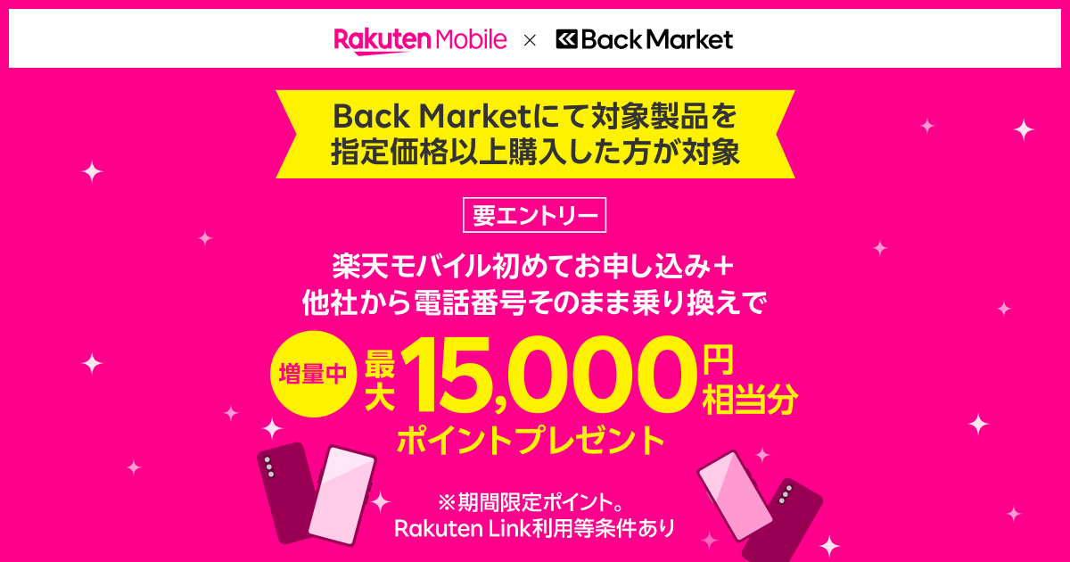 楽天モバイルが中古スマホのBack Marketと提携、新規回線契約とセットでポイント還元
