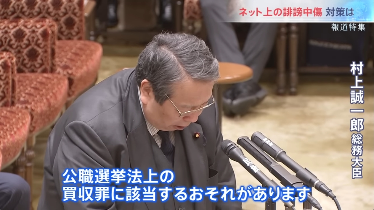 【徹底的にやれ】クラウドワークスを介した”インチキ選挙”(世論誘導工作バイト)が国会でも問題提起!村上総務相「公選法上の買収罪に該当する恐れがある」石破総理「カネで世論を動かすことは(民主主義において)あってはならない」