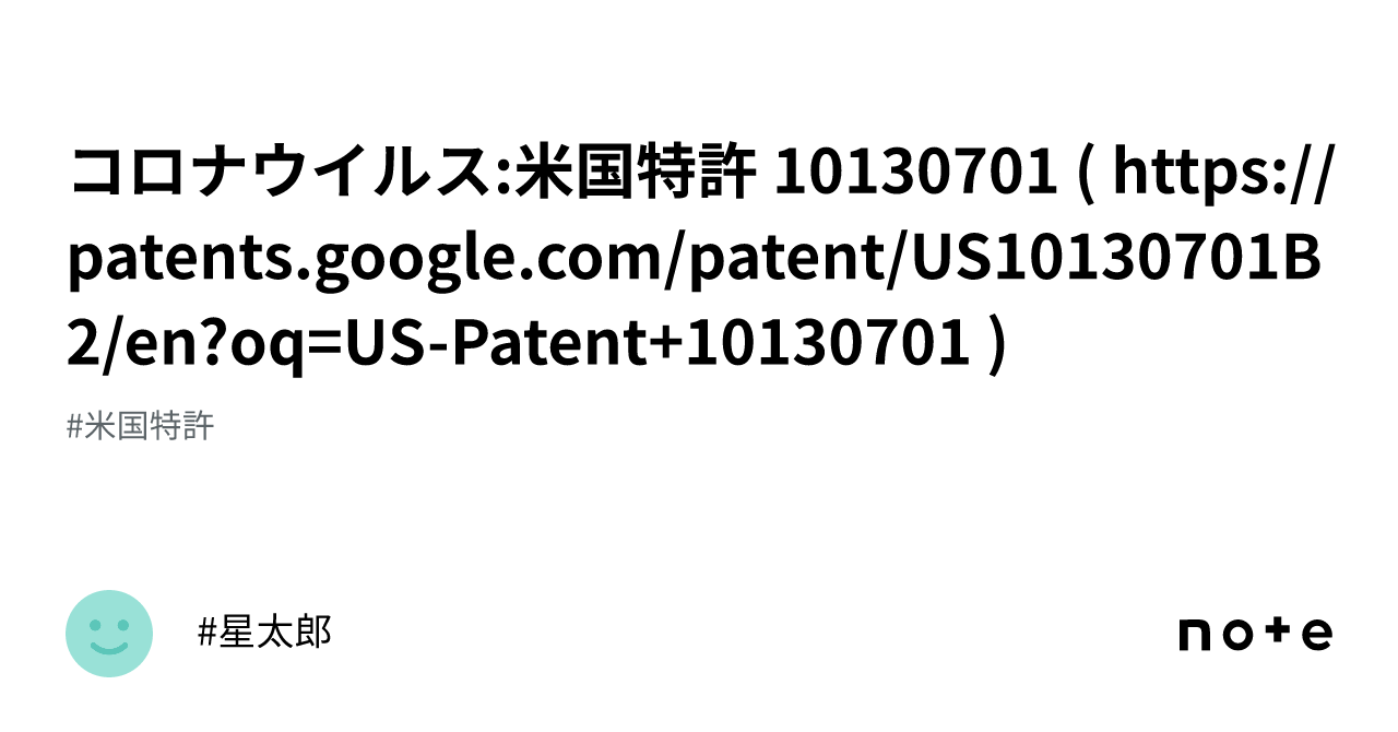 ▪️コロナウイルス:米国特許 10130701 ( https://patents.google.com/patent/US10130701B2/en?oq=US-Patent+10130701 )|#星太郎