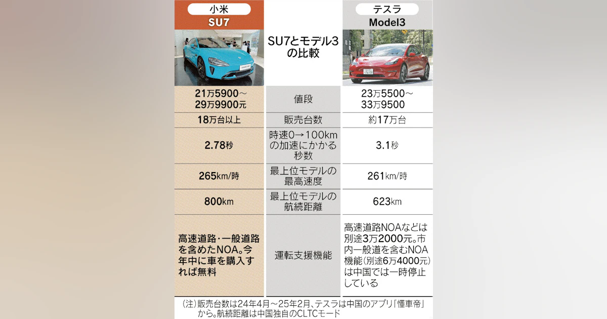 Xiaomi SU7が中国でテスラのモデル3を販売台数で超えたという記事です。 「両利きの経営」小米EV快走日本経済新聞 nikkei.com/article/DGKKZO…