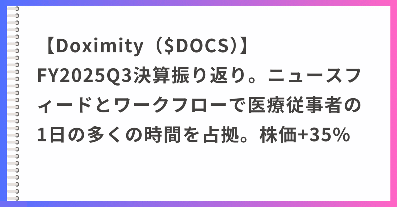 【Doximity($DOCS)】FY2025Q3決算振り返り。ニュースフィードとワークフローで医療従事者の1日の多くの時間を占拠。株価+35%|吉永和貴