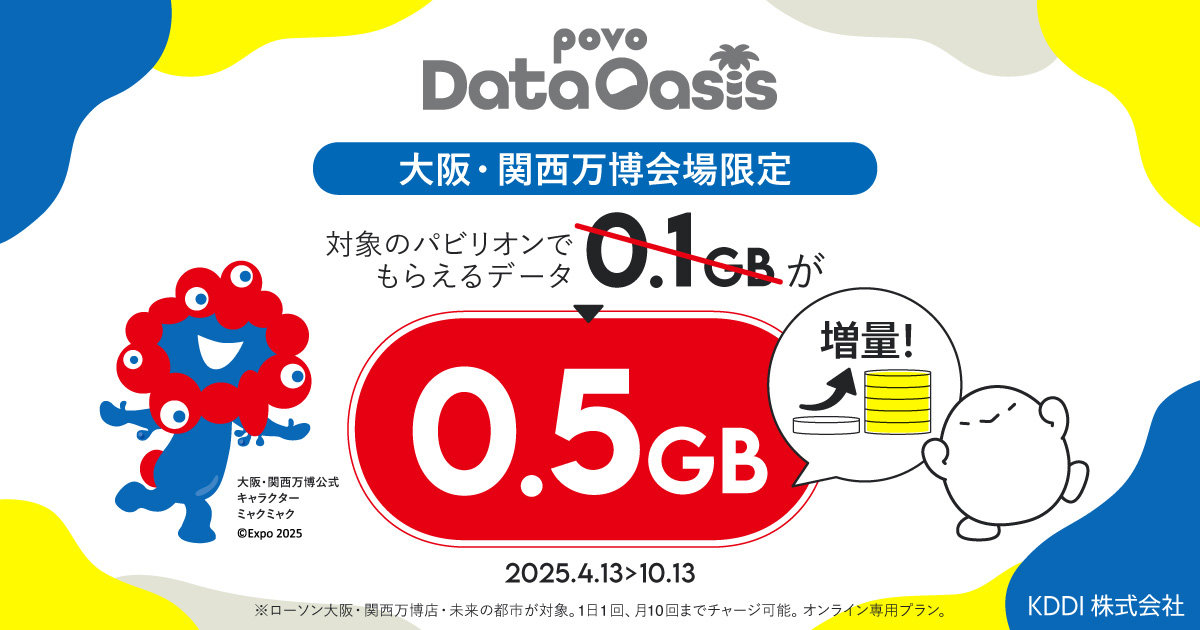 無料でデータ容量がもらえる「povo Data Oasis」がローソン関西万博店とKDDI参画ショーケース限定で5倍に増量