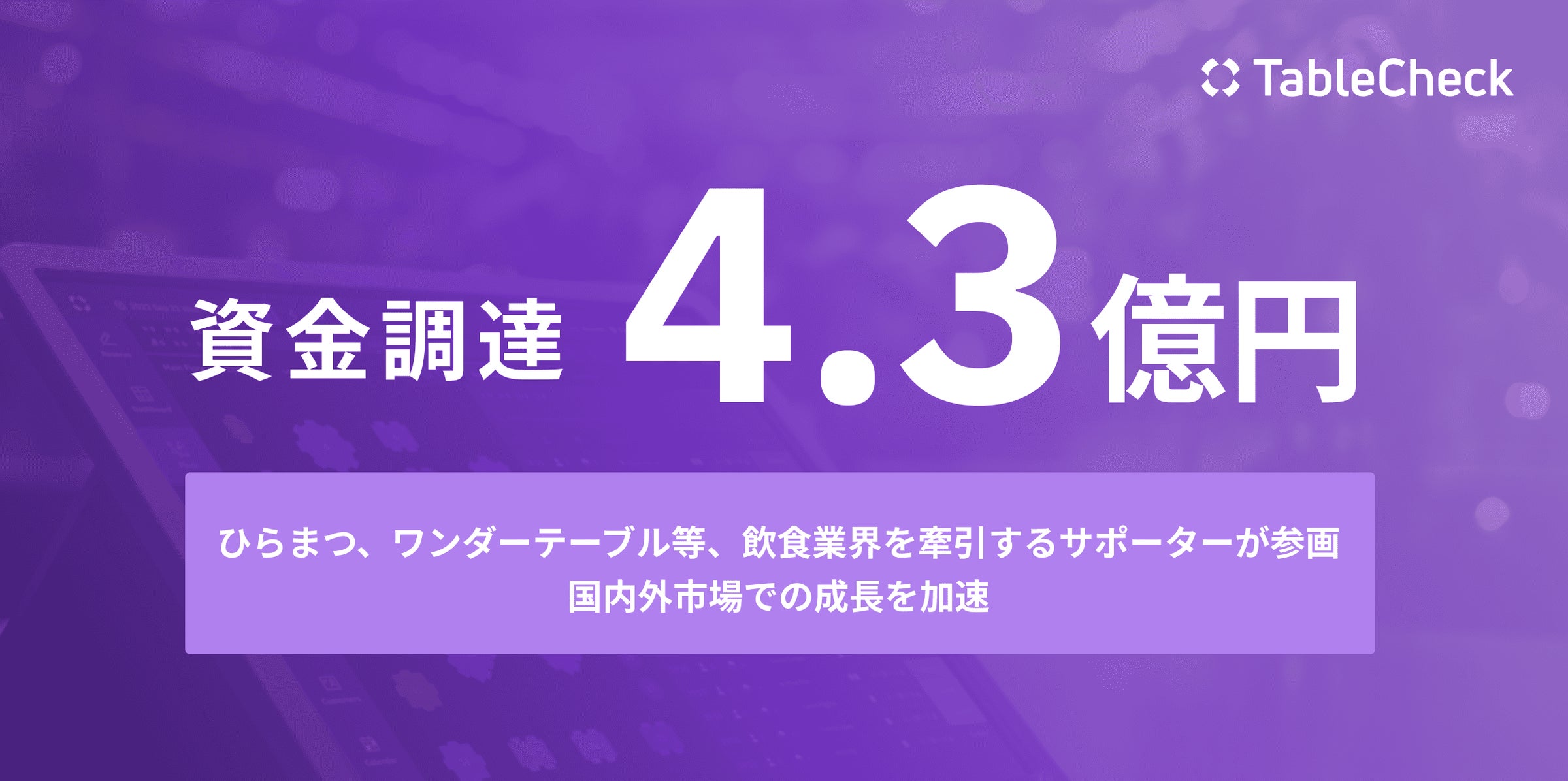 TableCheck、4.3億円の資金調達実施