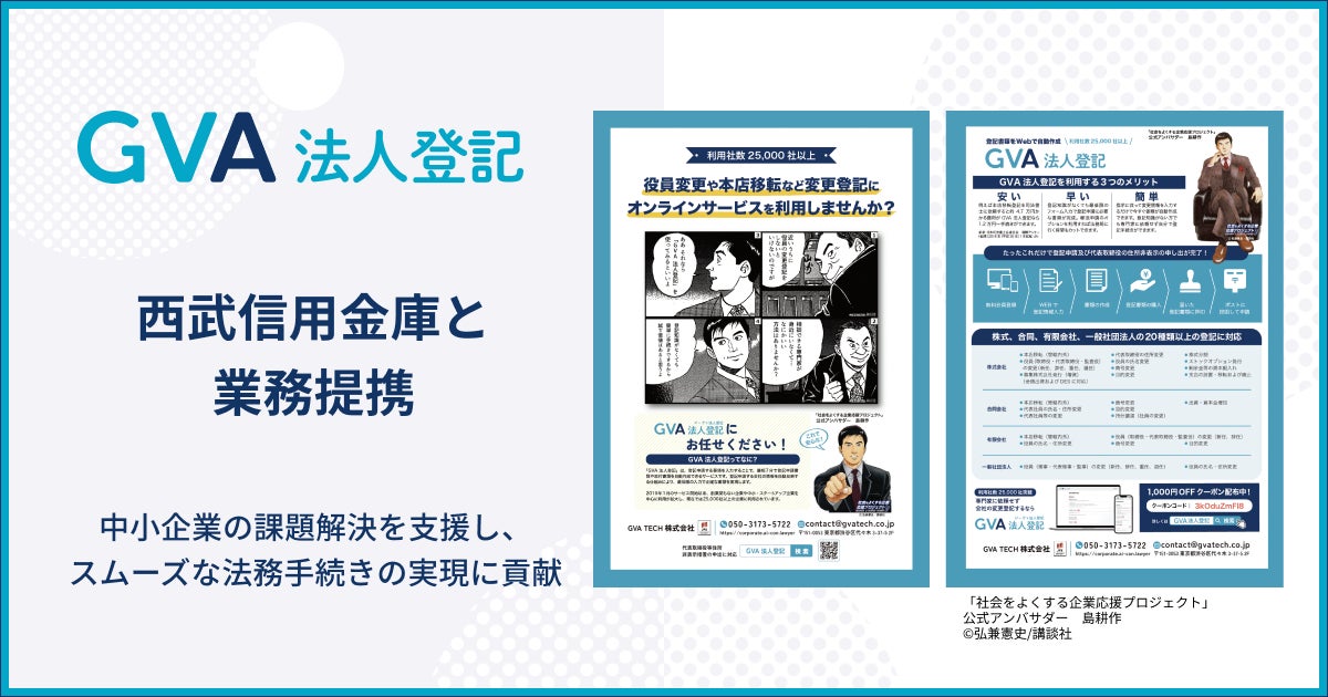 25,000社以上の導入実績「GVA 法人登記」が西武信用金庫と業務提携