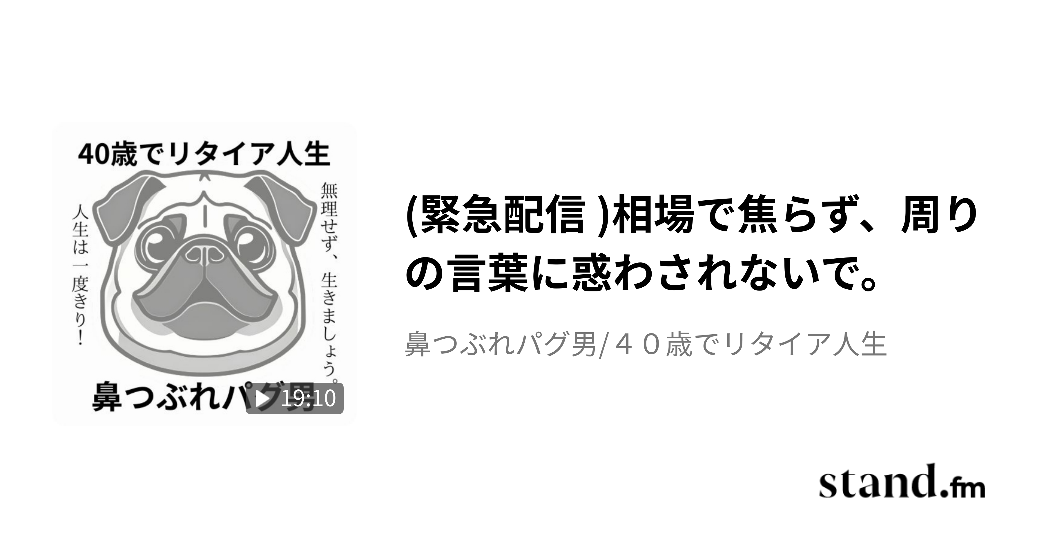 (緊急配信 )相場で焦らず、周りの言葉に惑わされないで。 - 鼻つぶれパグ男/40歳でリタイア人生 | stand.fm