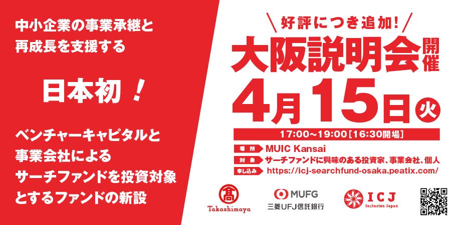 [4/15夜 大阪開催] VCと事業会社が創る!事業承継の新しい選択肢「ICJ1号ファンド オブ サーチファンド」説明会