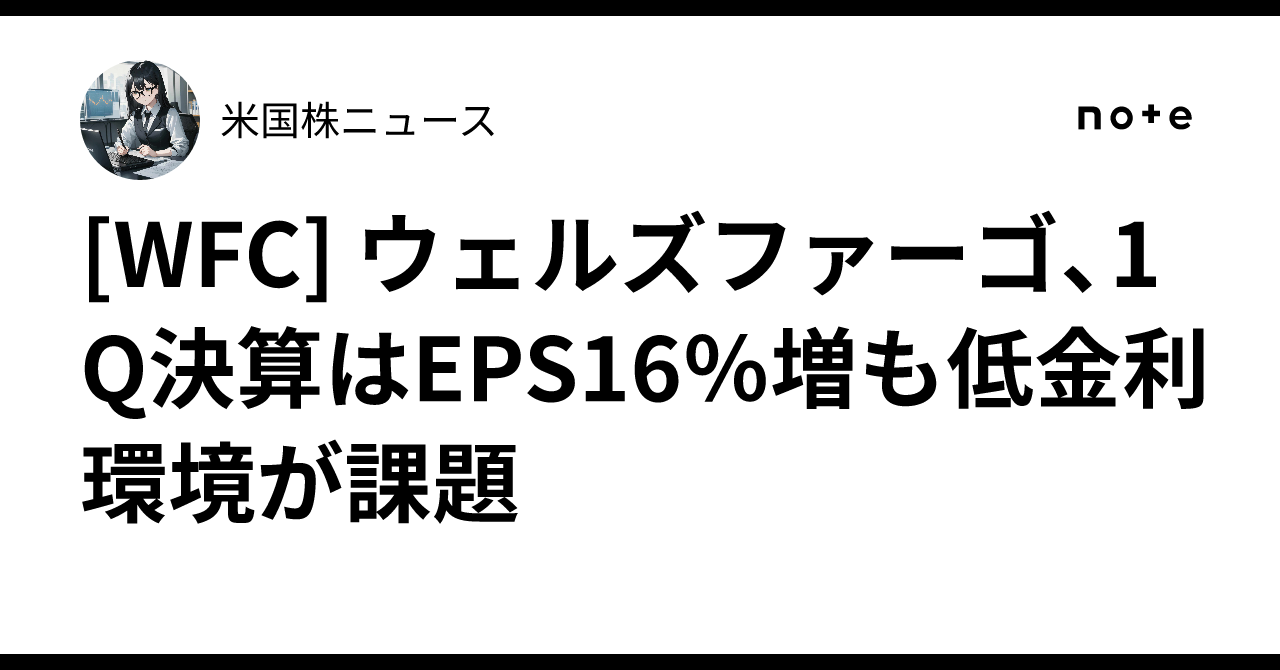 [WFC] ウェルズファーゴ、1Q決算はEPS16%増も低金利環境が課題|米国株ニュース