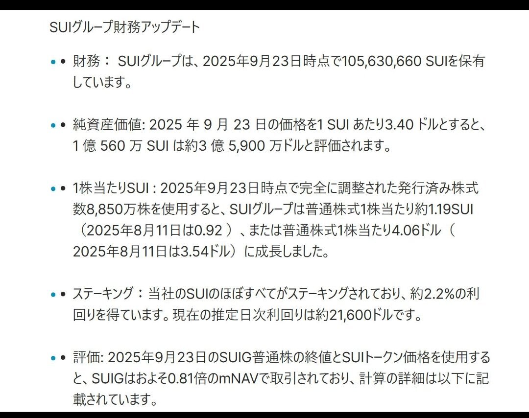 #SUIG はSUI財団と公式に提携している唯一のトレジャリー企業。 株なのでNISAで非課税も可能。 $SUI の可能性を信じるなら選択肢としてありかも。 直近の材料は年内ステーブルコイン事業参入ですかね。 日本で買えるのはmoomoo証券だけ。口座開設&入金で米国株貰えますよ🤭 j.jp.moomoo.com/0ufxsw pic.x.com/HByqrPBL3o