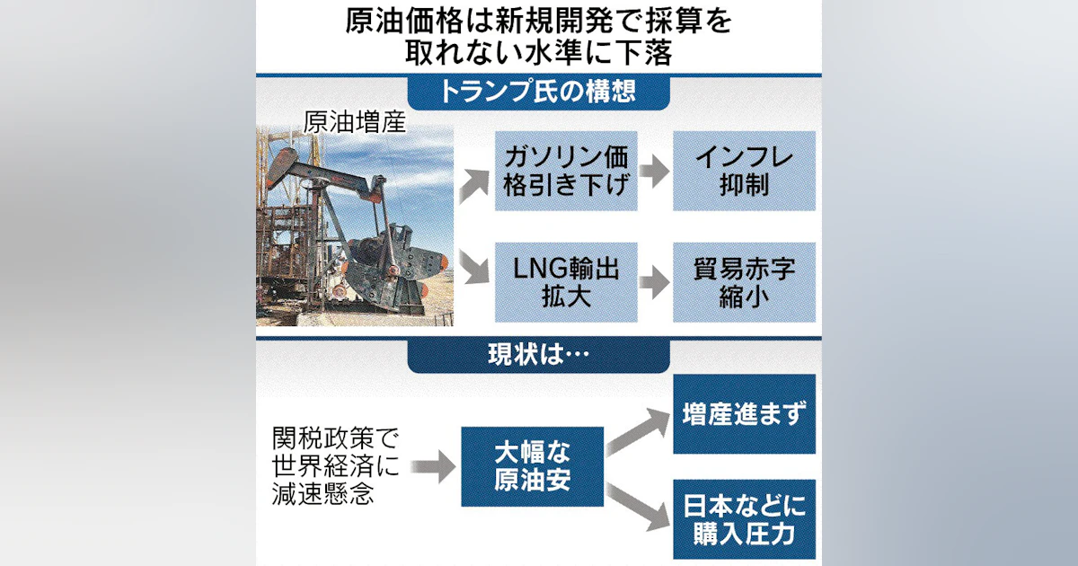 予期せぬ原油安、崩れる増産構想 トランプ支持基盤に打撃 LNG輸出も不透明 - 日本経済新聞