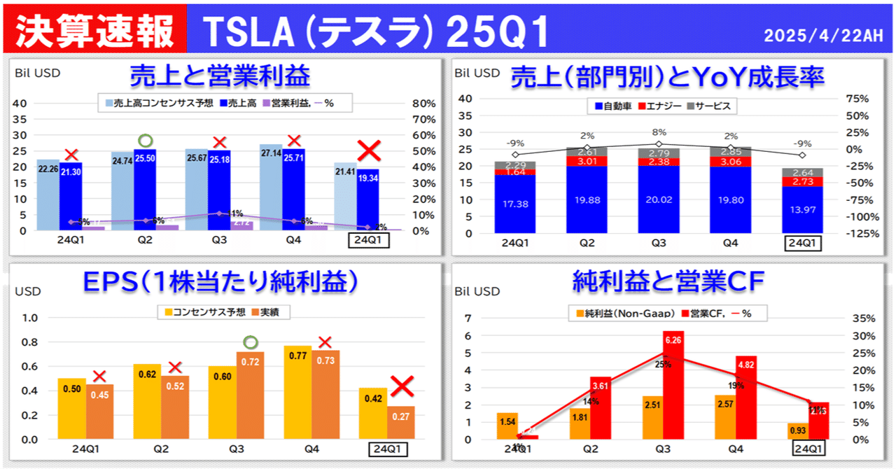 テスラ (TSLA) 25Q1決算速報|カフェラバ ? 投資が副業