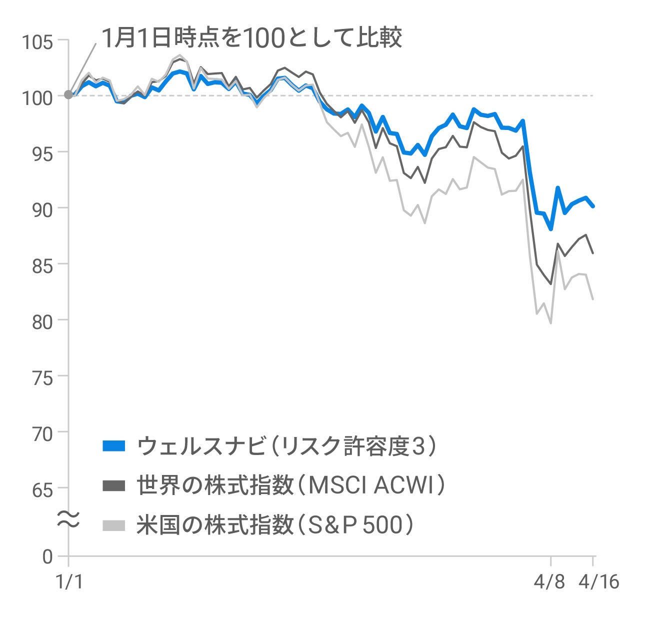 ウェルスナビは、今年1月から4月中旬までの期間を対象に、株式のみの分散投資と、世界全体のさまざまな資産への分散投資のパフォーマンスを比較しました。幅広い種類の資産に分散して投資を行った場合、資産価格が下落する幅を抑えられたことがわかりました。 prtimes.jp/main/html/rd/p…