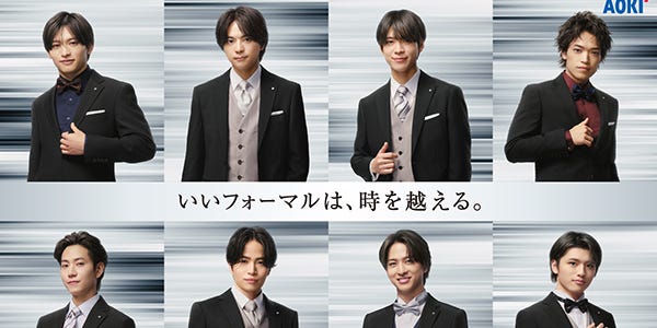 timelesz、8人体制で初CM「AOKI」“タイムレス”なフォーマルを体感 - モデルプレス