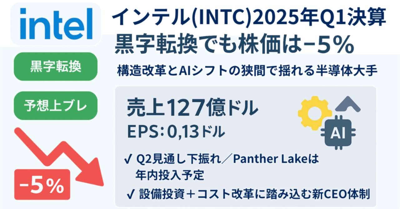 ?インテル(INTC)決算まとめ【2025年1月~3月|1Q】黒字転換も株価は-5%下落|橘 龍馬@マネーの研究室