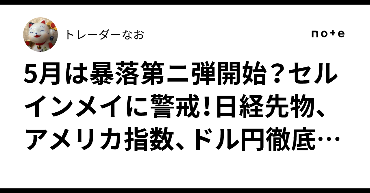 すみません。記事の最初に追記を書きました。是非ご参考に。 5月は暴落第ニ弾開始?セルインメイに警戒!日経先物、アメリカ指数、ドル円徹底分析! note.com/atarimaenohibi…
