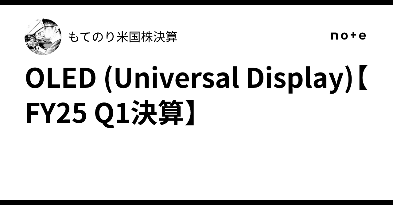 OLED (Universal Display)【FY25 Q1決算】|もてのり✨米国株決算