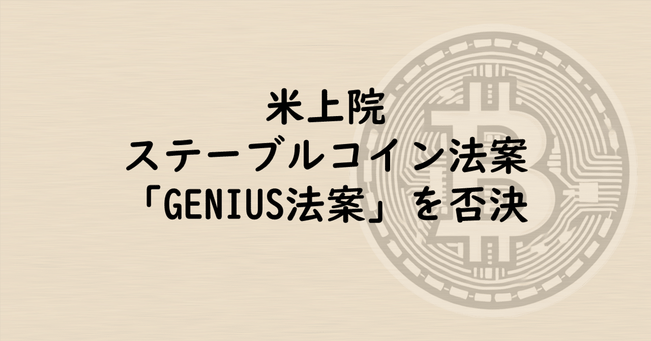 米上院、ステーブルコイン法案「GENIUS法案」を否決|sakane