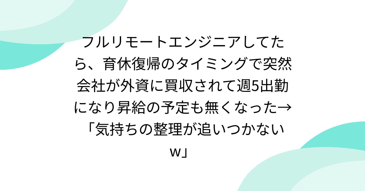 フルリモートエンジニアしてたら、育休復帰のタイミングで突然会社が外資に買収されて週5出勤になり昇給の予定も無くなった→「気持ちの整理が追いつかないw」