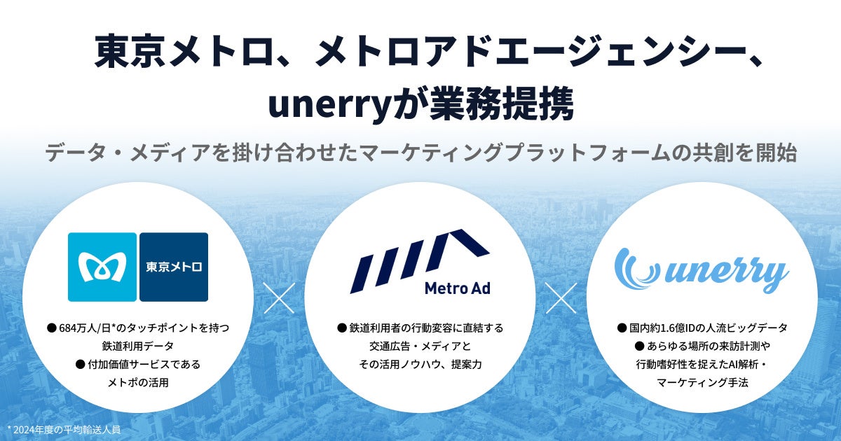 東京メトロ、メトロアドエージェンシー、unerryの3社が業務提携しデータ・メディアを掛け合わせたマーケティングプラットフォームの共創を開始