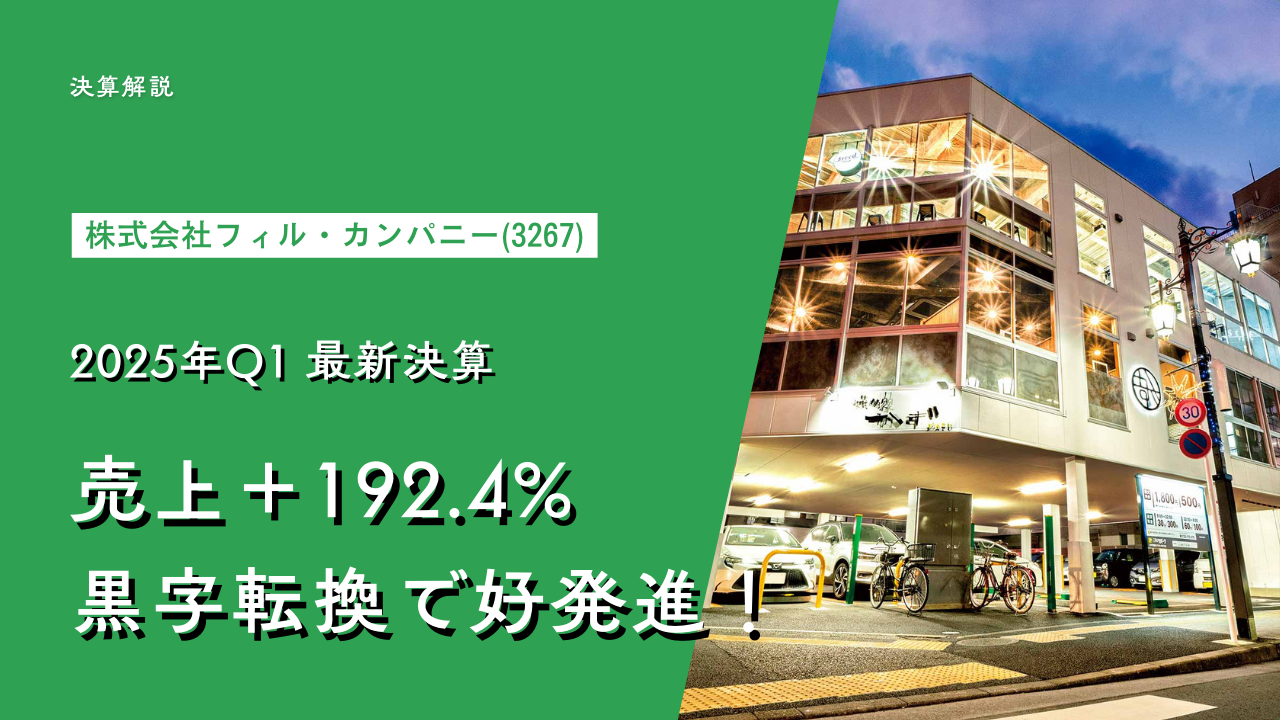 フィル・カンパニー【3267】2025年11月期 第1四半期決算を解説!売上+192.4%、黒字転換で好発進! | Moneychat Life
