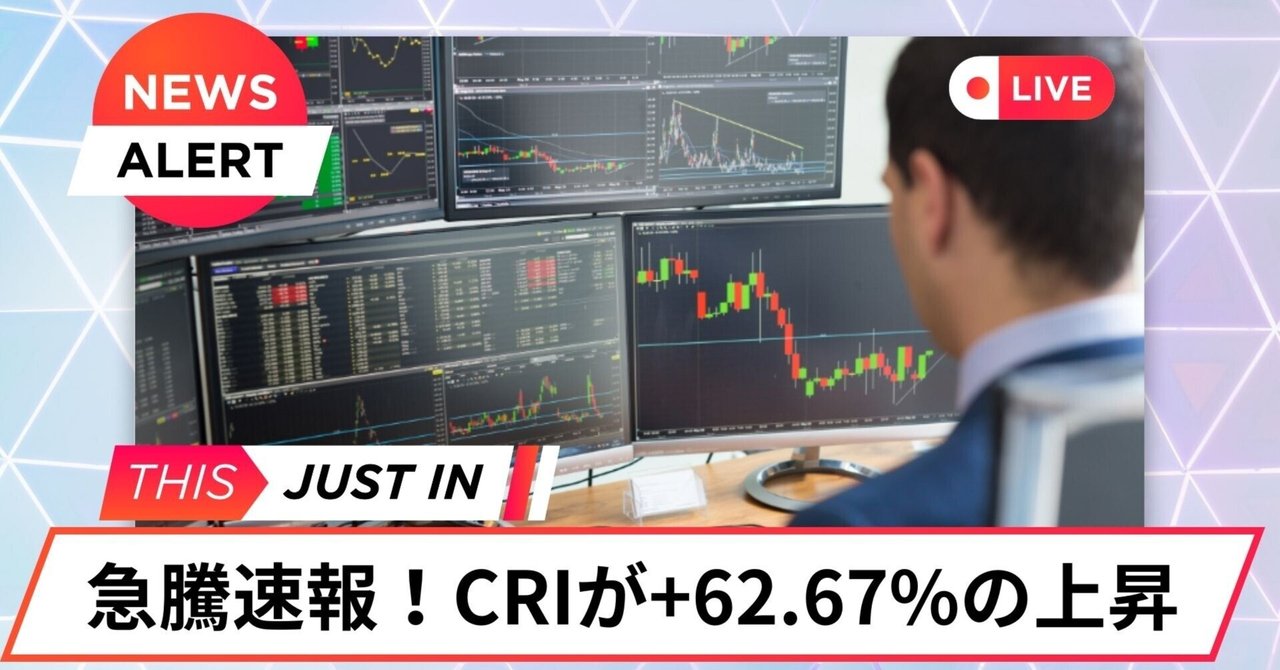 急騰速報![3698]CRI・ミドルウェアが+62.67%の上昇|投資系ニュース速報まとめ