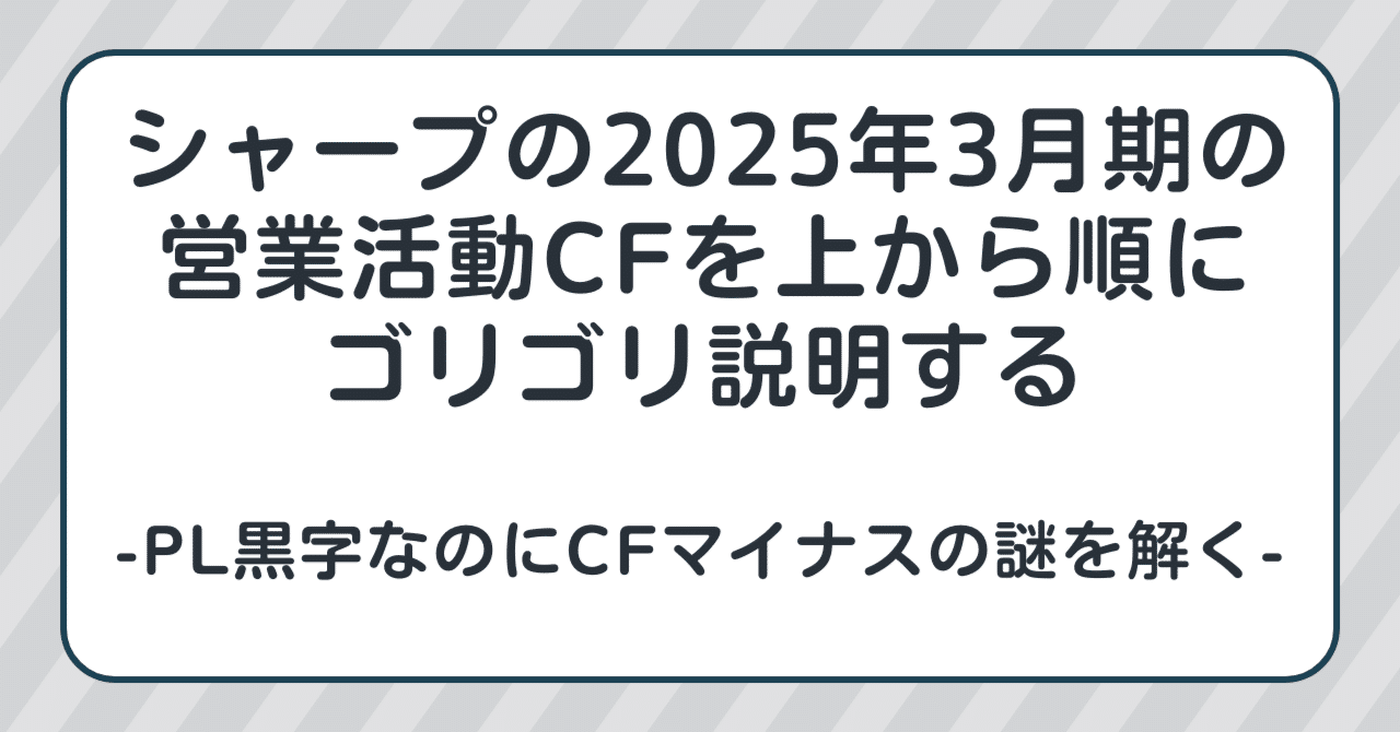 シャープの2025年3月期の営業活動CFを上から順にゴリゴリ説明する(PL黒字なのにCFマイナスの謎を解く)|はる|簿記・企業分析ならお任せ