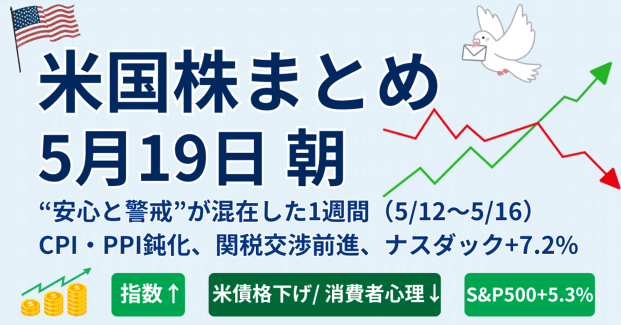 【米国市場まとめ|2025年5月19日】S&P+5.3%、ナスダック+7.2%の急反発|“安心と警戒”が同居した1週間の米国市場|橘 龍馬@マネーの研究室