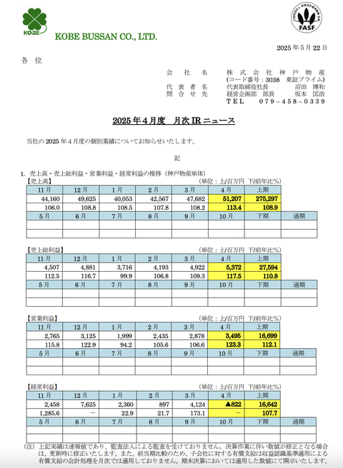 業務スーパーの神戸物産 2025年4月度月次業績 : 官報ブログ