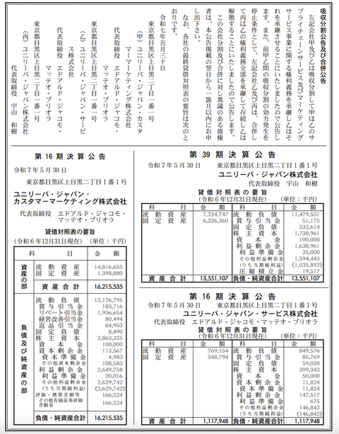 kanpo.blog.jp/archives/44626… ・ 当期純利益億3589万円 利益剰余金億3896万円 ・ユニリーバ・ジャパン・カスタマーマーケティング 決算公告 当期純利益億2974万円 利益剰余金億4975万円
