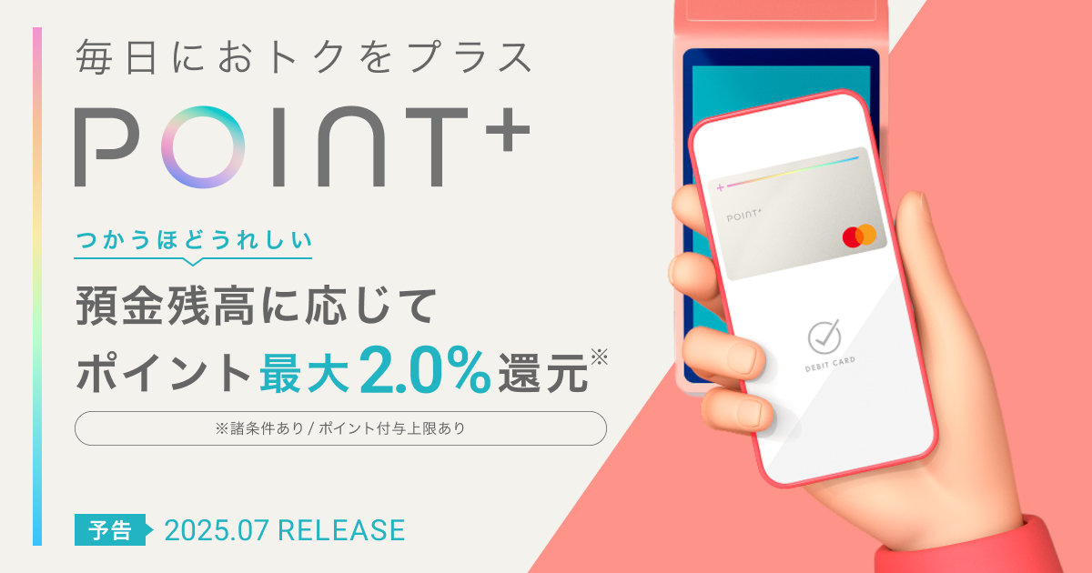 住信SBIネット銀行が年会費無料の「デビットカード Point+(Mastercard)」を7月にリリース 最大2%還元でバーチャルカードから