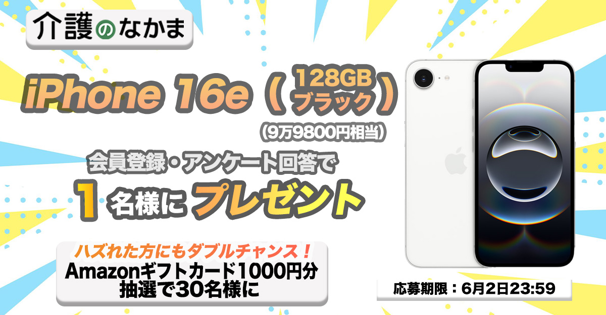 『iPhone 16e』が当たる! Amazonギフトカード1000円分のダブルチャンスも30名様に介護ポストセブン kaigo.com/191693