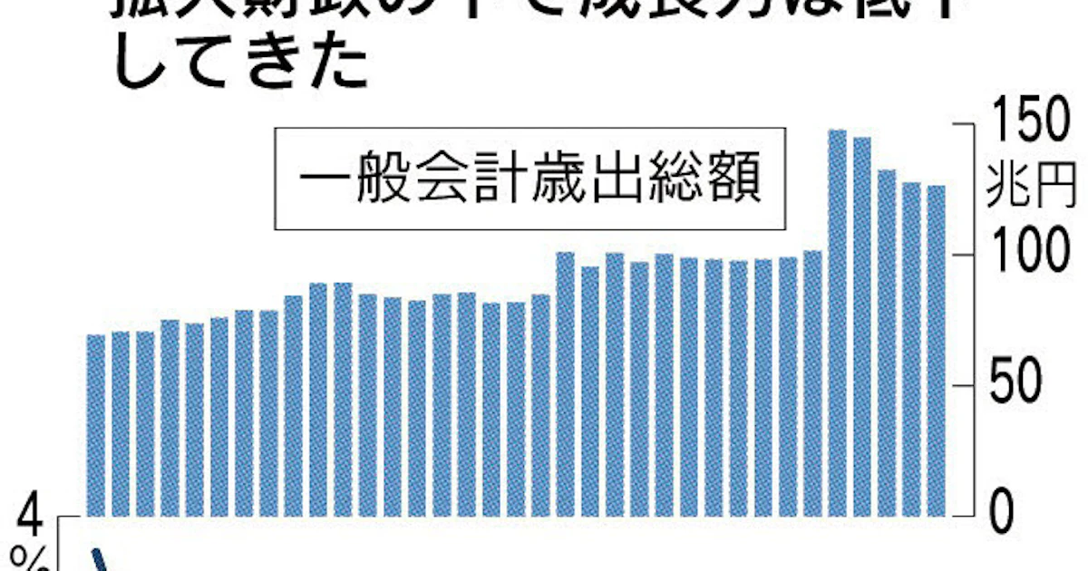トランプカオス 日本の選択(1)「失った30年」教訓残す 予算1.8倍、成長力は10分の1に バラマキ癖が経済弱らす - 日本経済新聞
