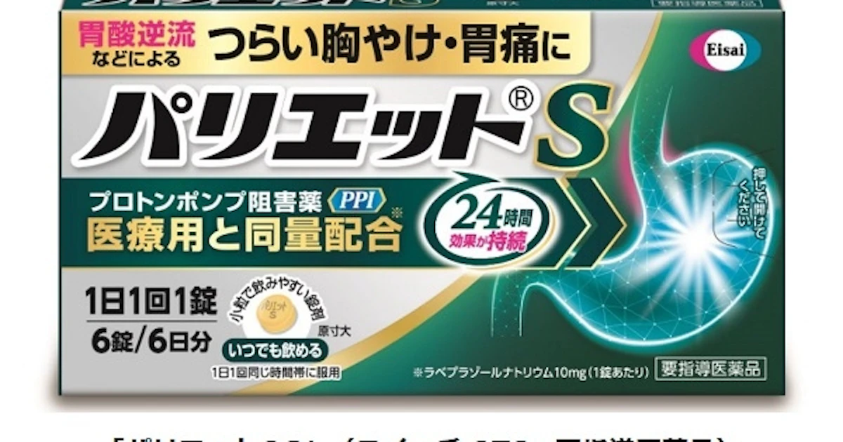 エーザイ、胃酸逆流などによる胸やけ・胃痛に優れた効果を発揮するプロトンポンプ阻害薬「パリエットS(要指導医薬品)」を発売 - 日本経済新聞