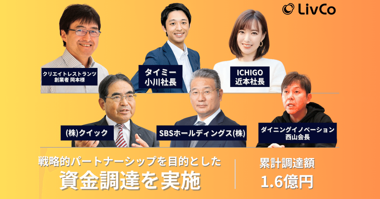 資金調達の裏側に迫るNote記事はこちら!note.com/livco/n/n802c3…
