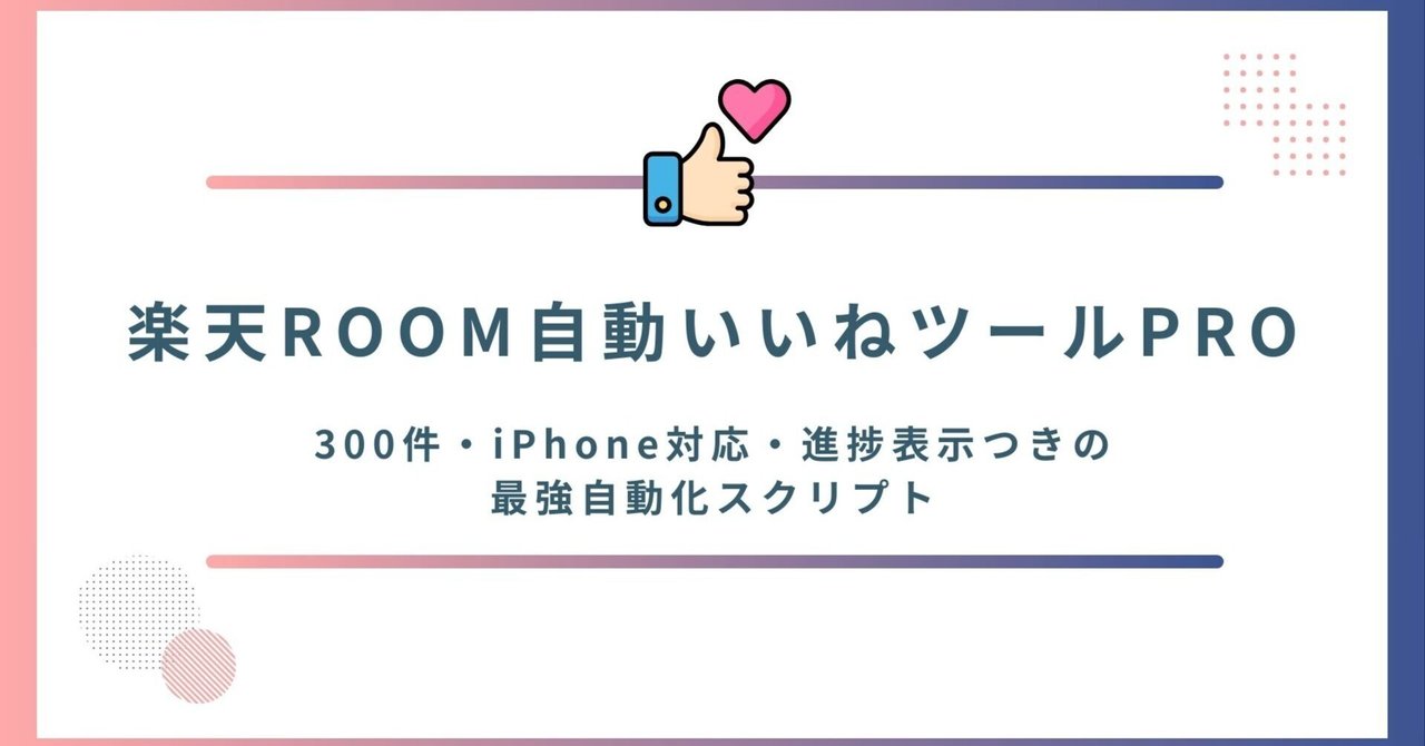 【楽天ROOM自動いいねツールPRO】1日300件・iPhone対応・進捗表示つきの最強自動化スクリプト|ワークライフハック
