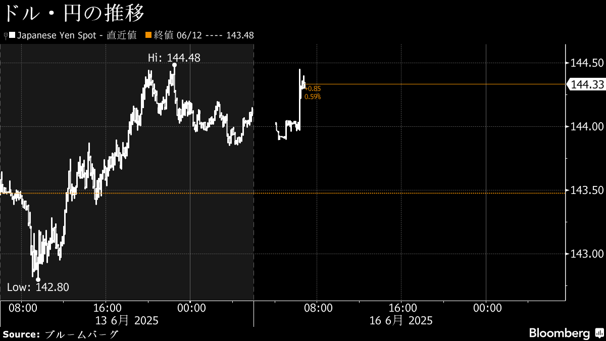 円下落して1ドル=144円台半ば、中東緊迫受けた原油高でドル買い