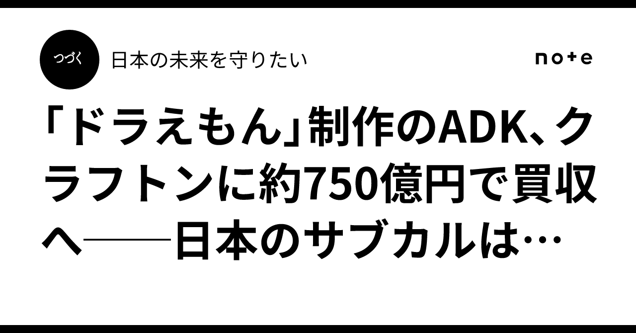 【ドラえもんが“外資”に】 ADKが韓国・クラフトンに約750億円で買収へ── 国民的アニメの裏側で進む“サブカル支配”。 日本の文化、誰が守る? ▼記事を読む note.com/fair_flax8886/…