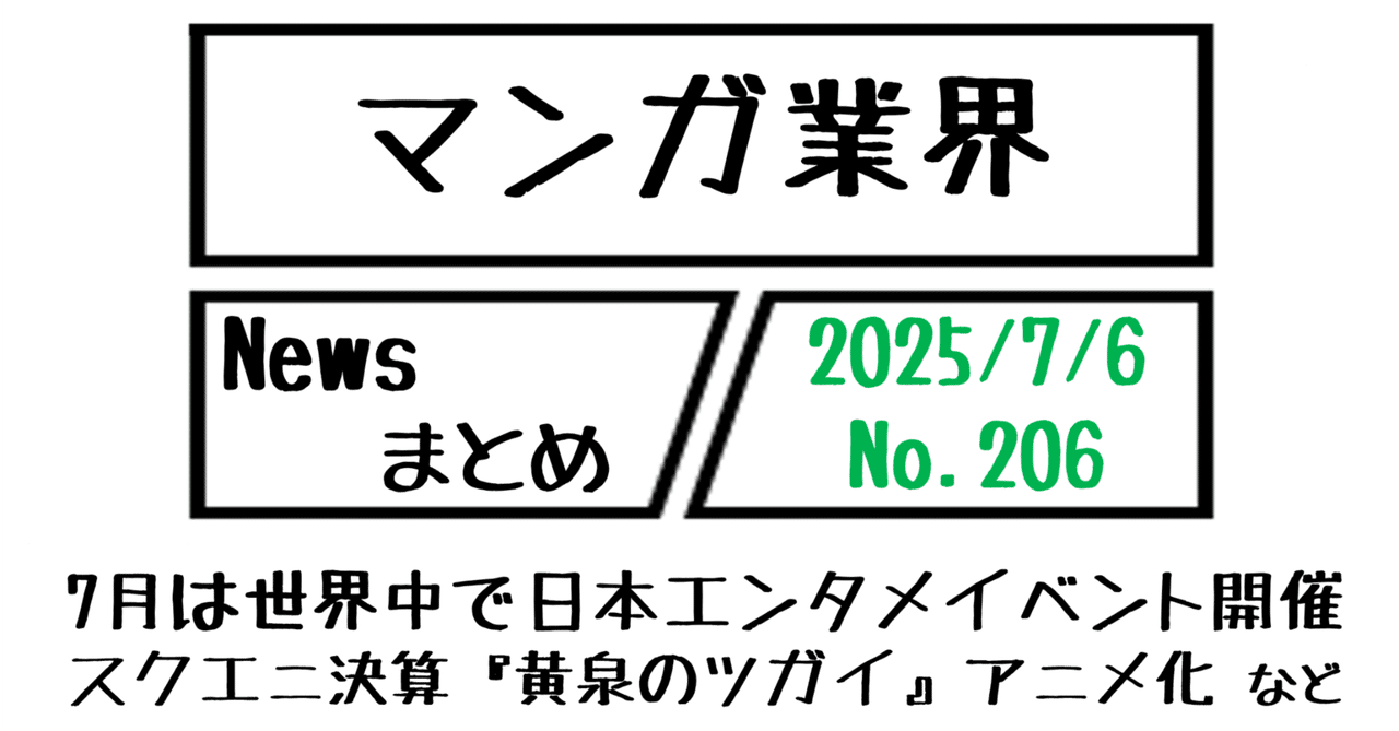 【マンガ業界Newsまとめ】7月は、ロス、パリ、サンパウロ等、世界中で日本エンタメイベント開催/スクエニ決算と『黄泉のツガイ』アニメ化 など|7/6-206|菊池健