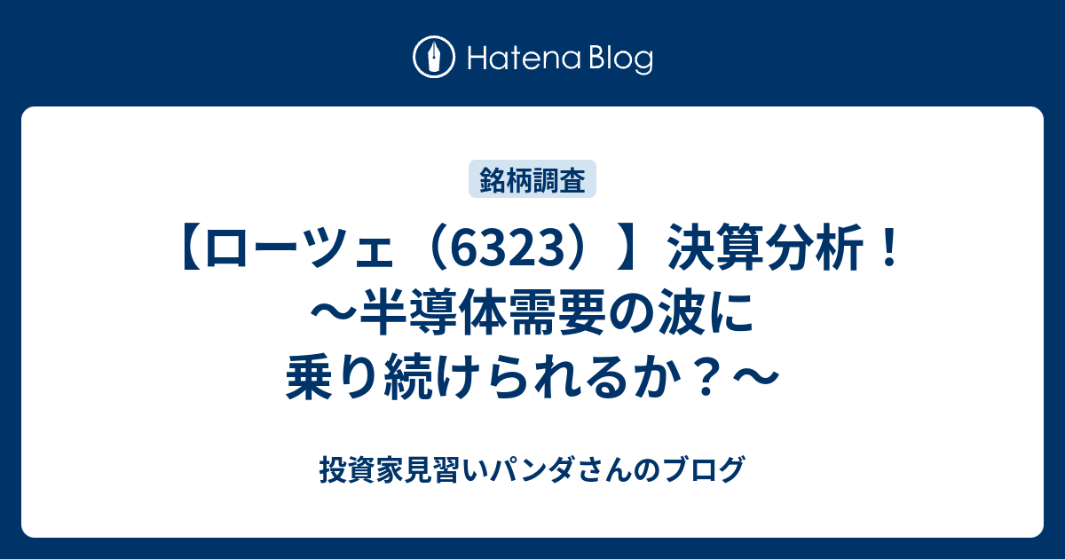 【ローツェ(6323)】決算分析! ~半導体需要の波に乗り続けられるか?~ - 投資家見習いパンダさんのブログ