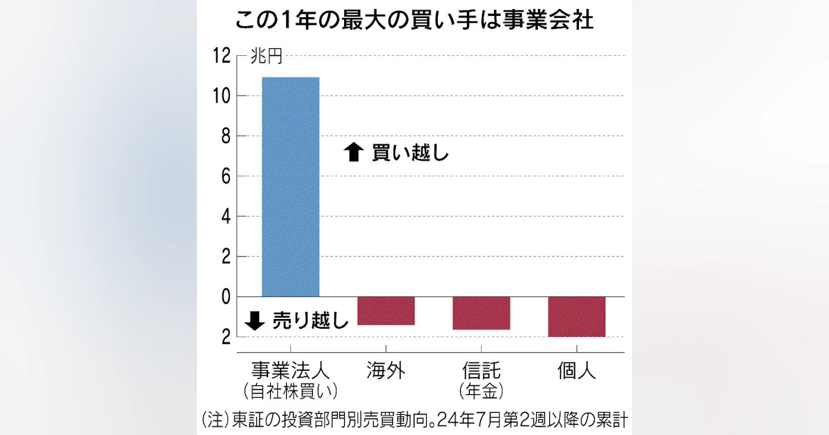 日本株、支えは自社株買い 最高値から1年、成長期待は低下 稼ぐ力の向上欠かせず - 日本経済新聞