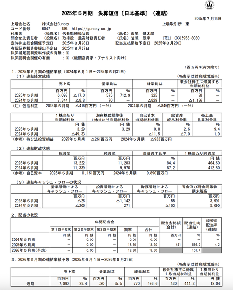 Gunosy 2025年5月期通期決算 : 官報ブログ