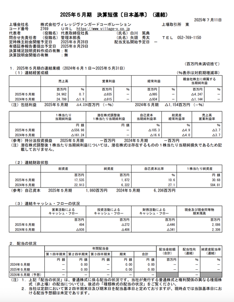 ヴィレッジヴァンガードコーポレーション 2025年5月期通期決算 : 官報ブログ