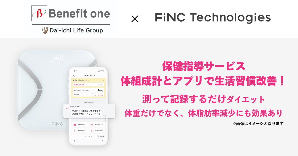 ベネフィット・ワンとFiNC Technologiesが提供する保健指導サービス『体組成計減量プログラムby FiNC』 にて2kg・2cmの目標達成