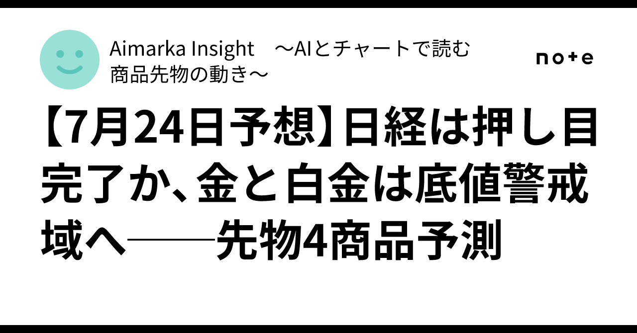 【7月24日予想】日経は押し目完了か、金と白金は底値警戒域へ──先物4商品予測|Aimarka Insight ~AIとチャートで読む商品先物の動き~