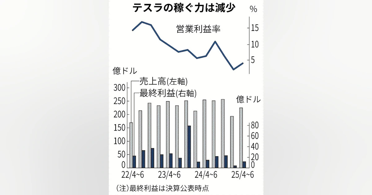 テスラ営業益4割減 4~6月、新型車でも挽回ならず - 日本経済新聞