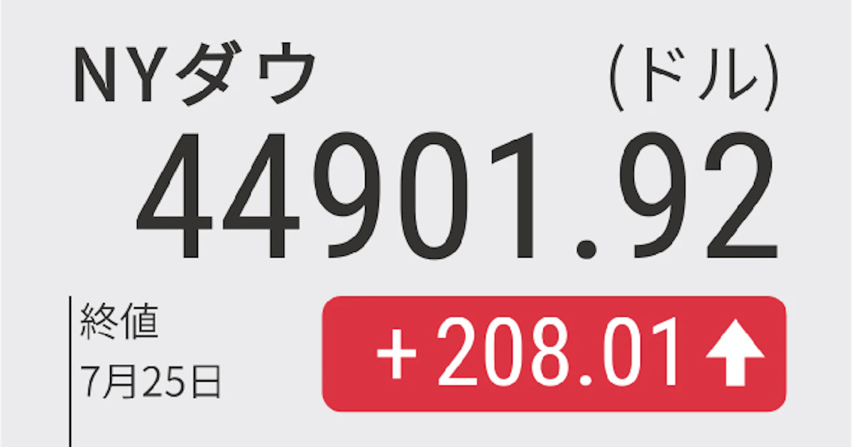 NYダウ208ドル高、米関税の進展期待 S&Pは5日連続最高値 - 日本経済新聞