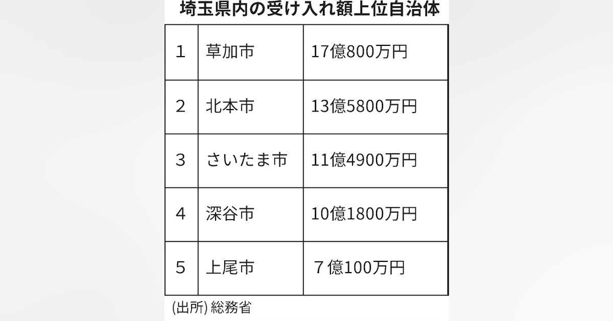 埼玉のふるさと納税、過去最高の123億円 首位は草加市 - 日本経済新聞