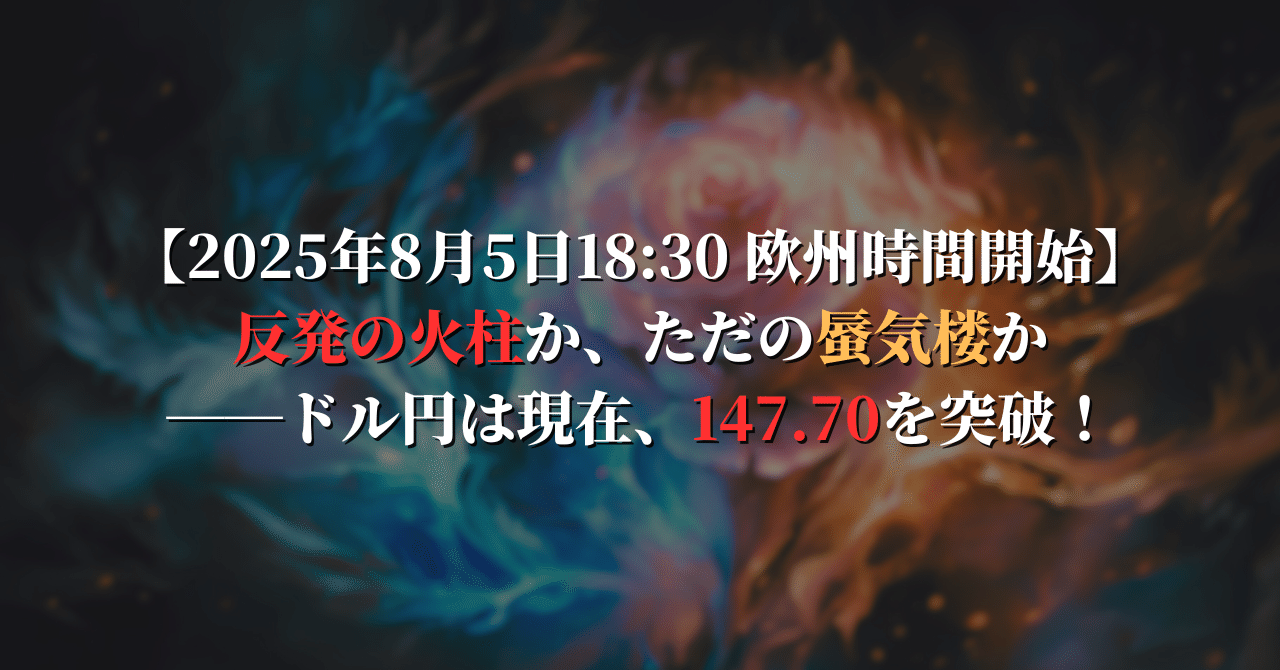 【2025年8月5日18:30 欧州時間開始】反発の火柱か、ただの蜃気楼か──ドル円は現在、147.70を突破!|モルアナ