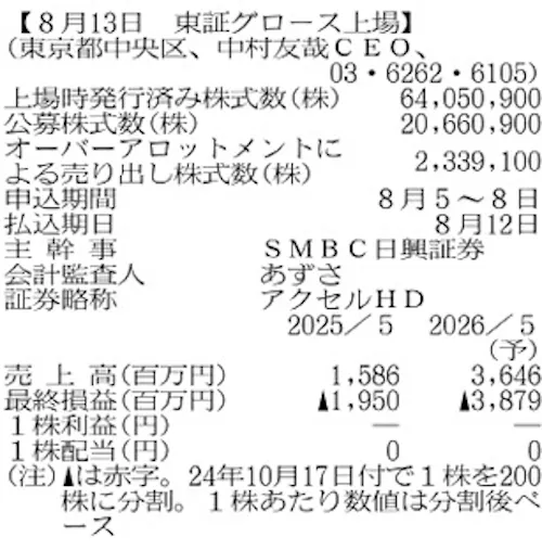 アクセルスペースホールディングス - 日本経済新聞