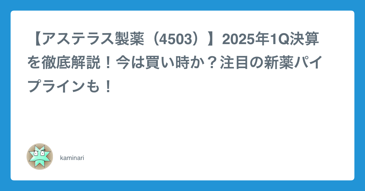 【アステラス製薬(4503)】2025年1Q決算を徹底解説!今は買い時か?注目の新薬パイプラインも!|月2万円の配当金を目指すブログ
