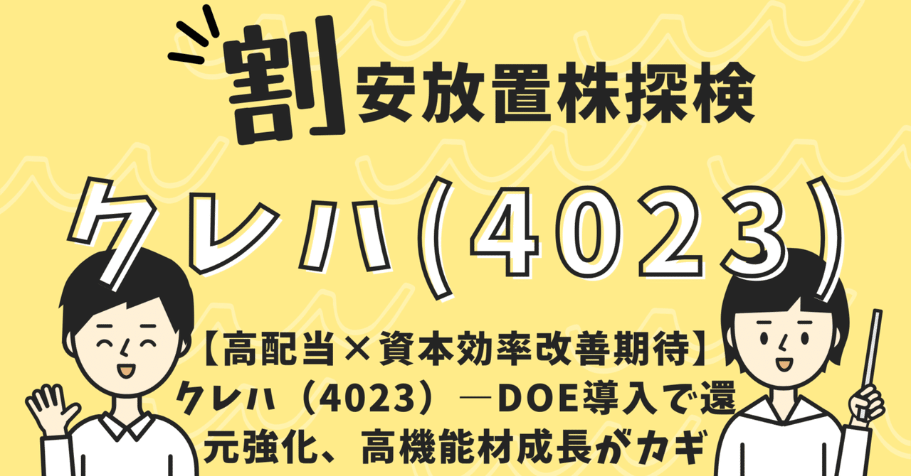 割安放置株探検【高配当×資本効率改善期待】クレハ―DOE導入で還元強化、高機能材成長がカギ note.com/chatgptexecuti… 化学メーカーのクレハが、2025年5月に大胆な株主還元策を発表しました。新たにDOE5%を導入し、年間配当は216円に増額。さらに総額400億